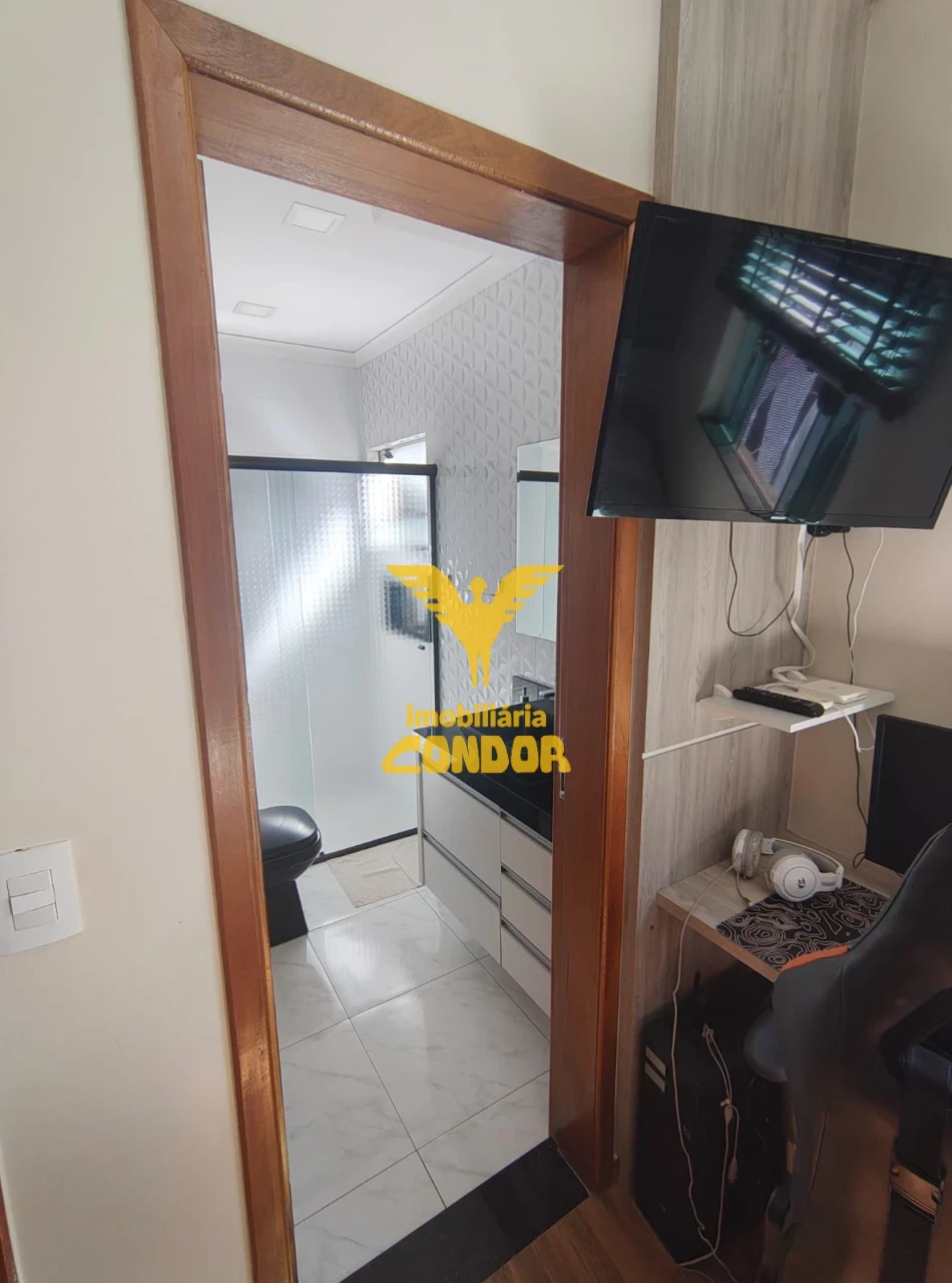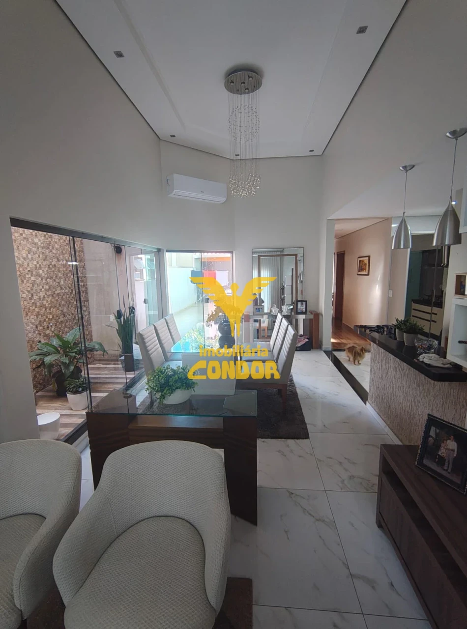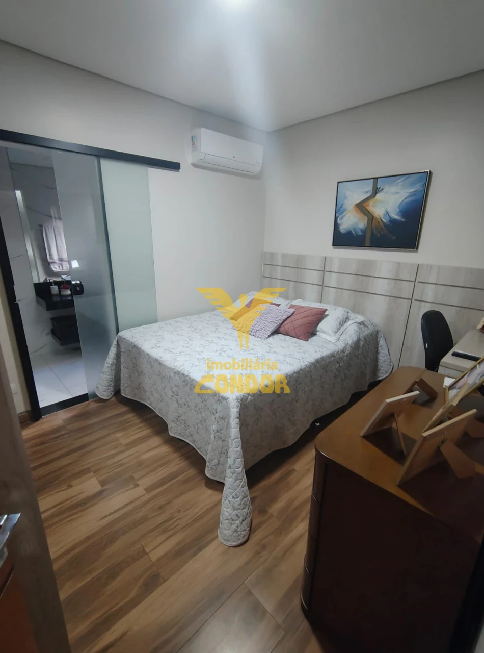 - Casa em Condomínio Fechado, com excelente acabamento, dormitórios com armários, cozinha planejada, estante planejada na sala, acabamento em gesso, porcelanato e granito, churrasqueira, ar condicionado.