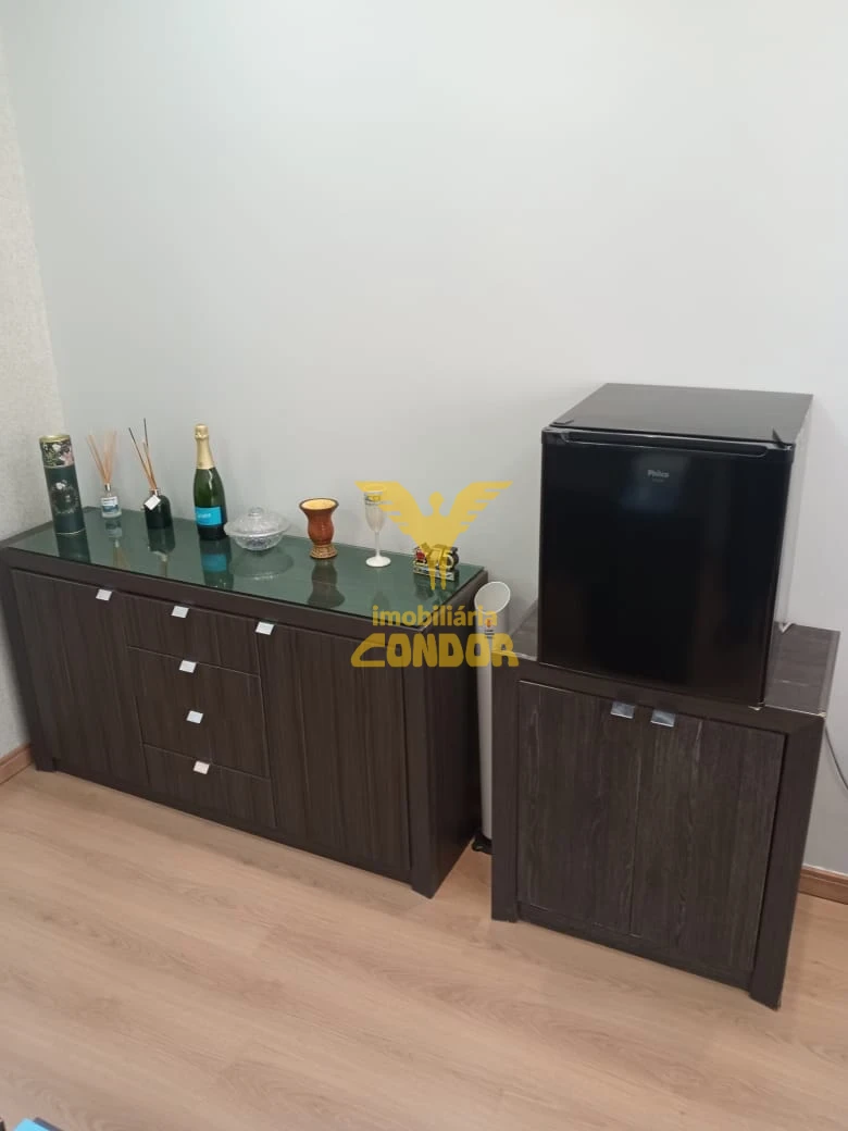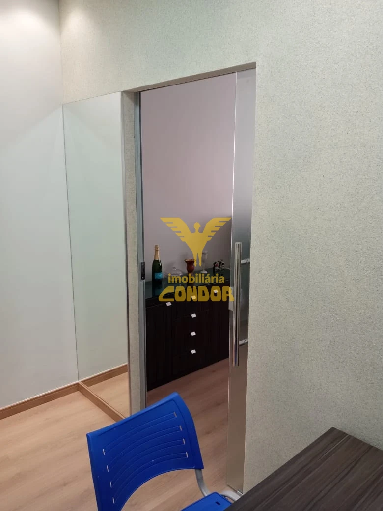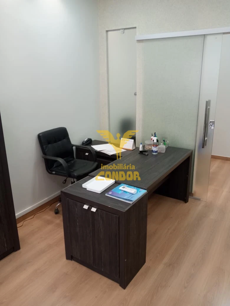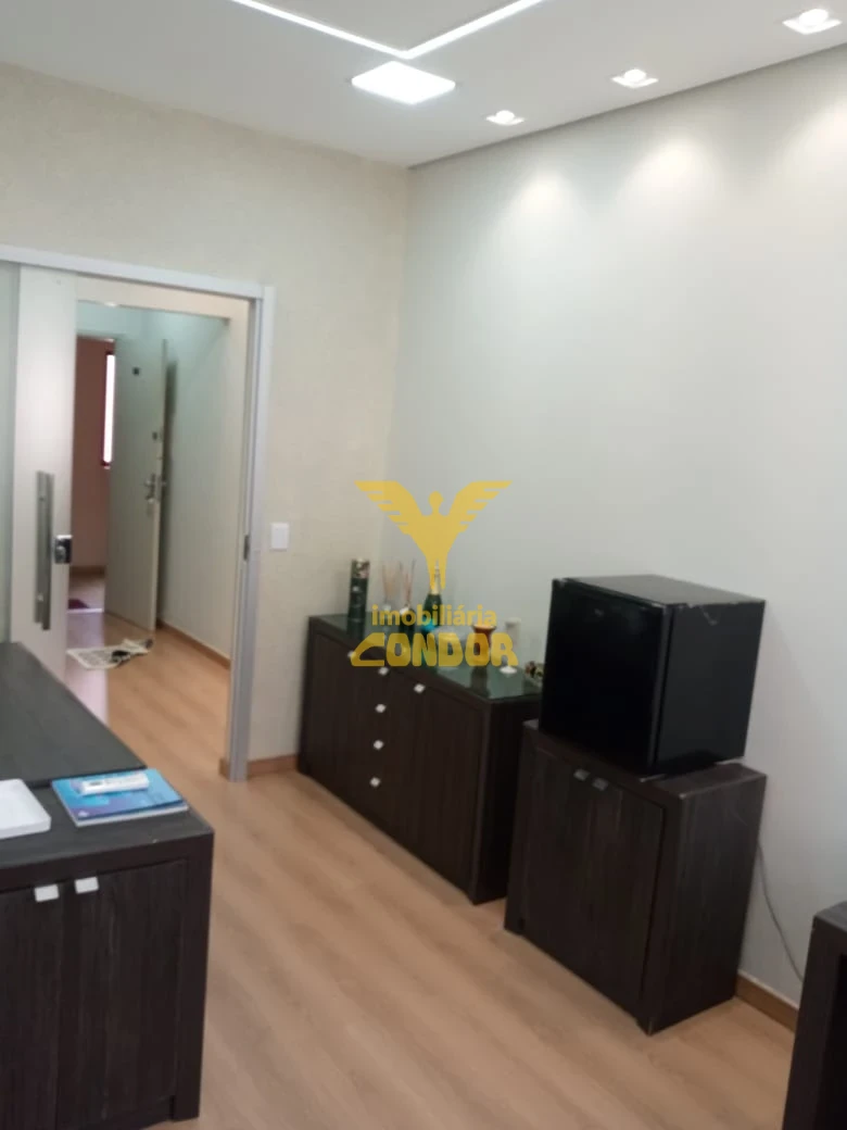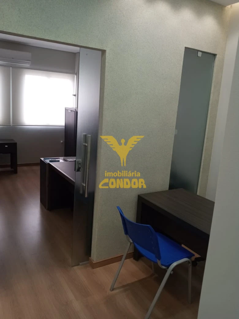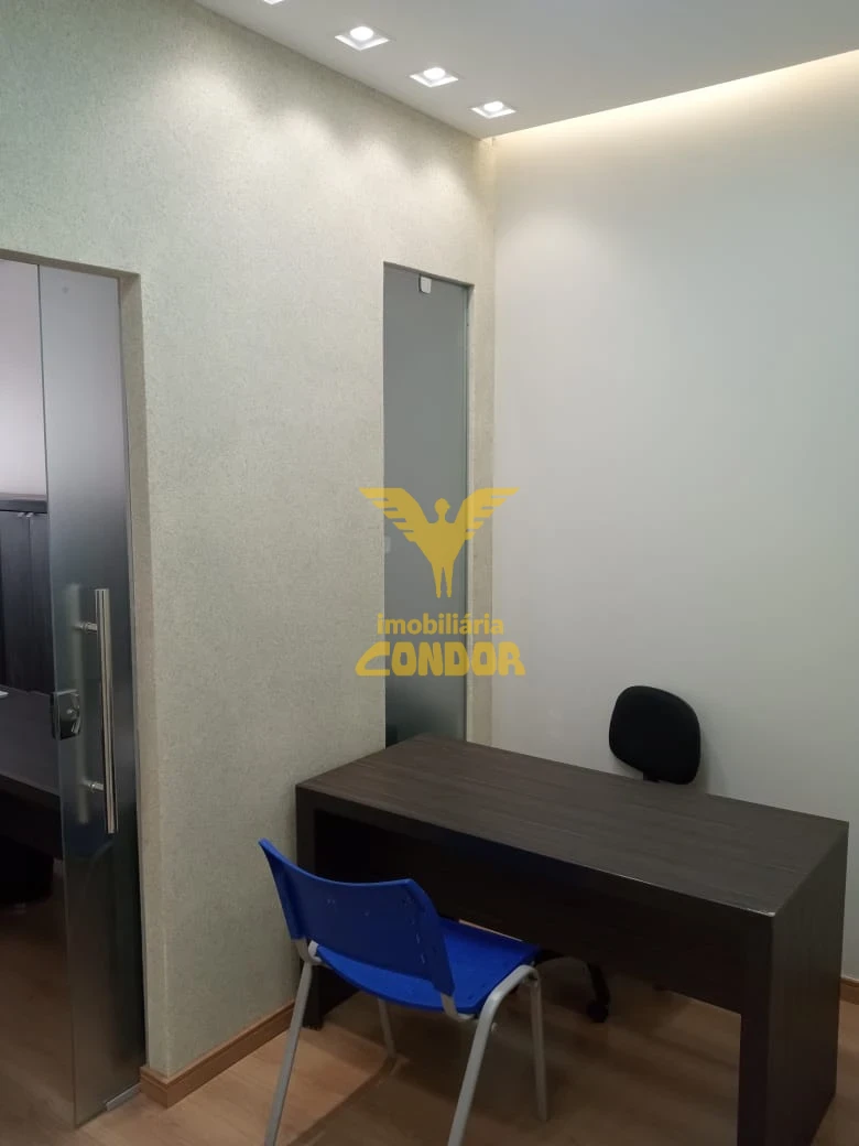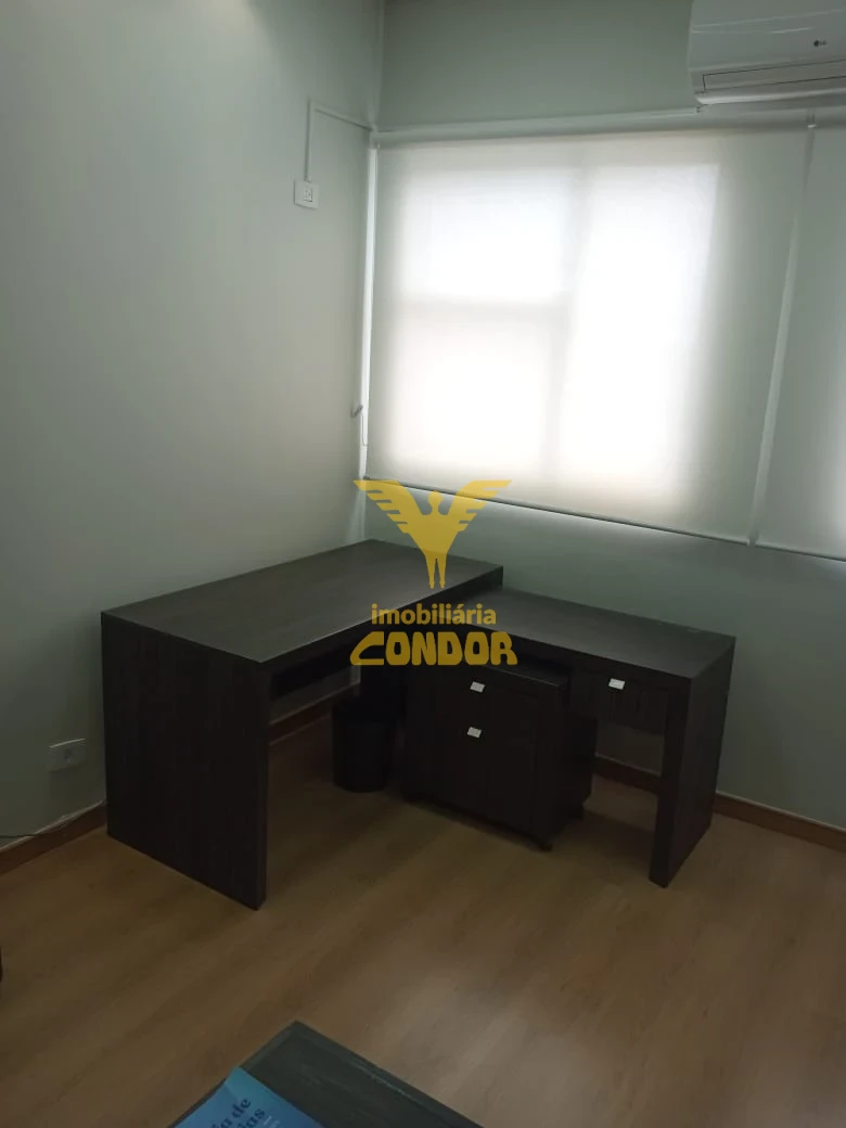 Sala comercial reformada, mobíliada com móveis, frigobar, ar condicionado, piso laminado teto em gesso.